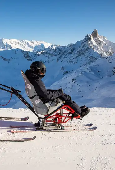 moniteur qualifié et équipement adapté pour profiter de la montagne, découvrir les sensations de glisse ou améliorer sa technique. TANDEMSKI ou AUTONOME.